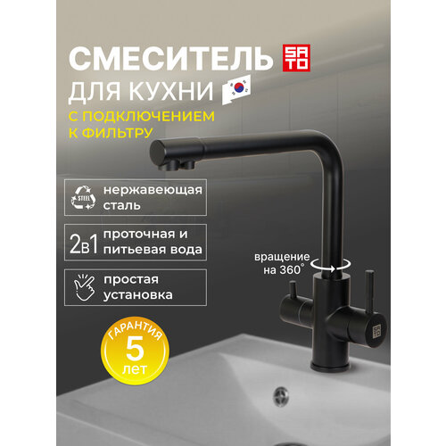 | Комплектация | смеситель для кухни с подключением под фильтр; два шланга гибкой подводки 60 см; монтажный комплект; инструкция; гарантийный талон |