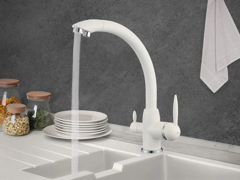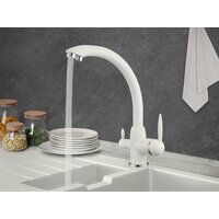 Смеситель для кухни Savol S-L1699W с краном для питьевой воды, однорычажный, латунный, белый, матовый, с поворотным изливом