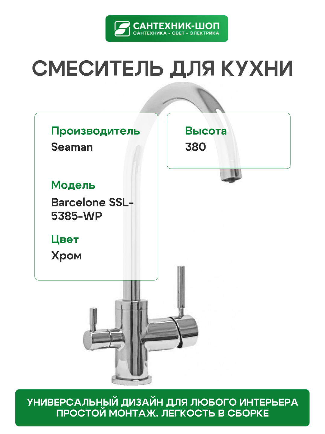 Смеситель для кухни Seaman Barcelone SSL-5385-WP Хром: сравнение цен, характеристики, фото, актуальное наличие и цены.