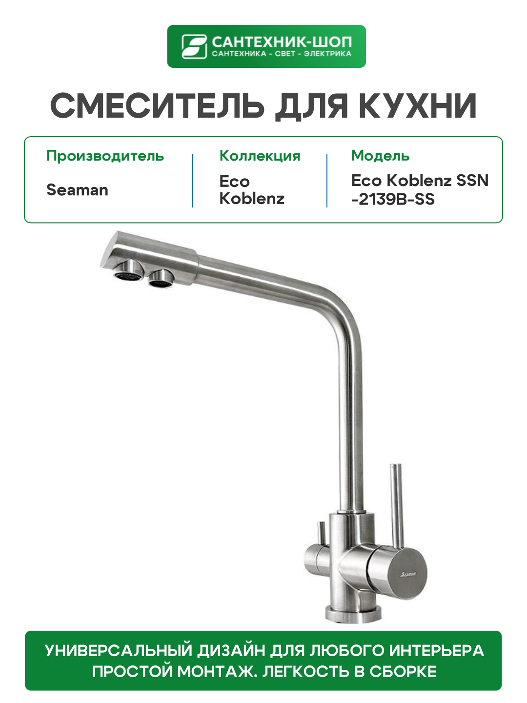 Купить Смеситель для кухни Seaman Eco Koblenz SSN-2139B-SS цвет Нержавеющая сталь сатин с доставкой по всей России. Смеситель для кухни Seaman Eco Koblenz SSN-2139B-SS цвет Нержавеющая сталь сатин: сравнение цен, характеристики, фото, актуальное наличие и цены.