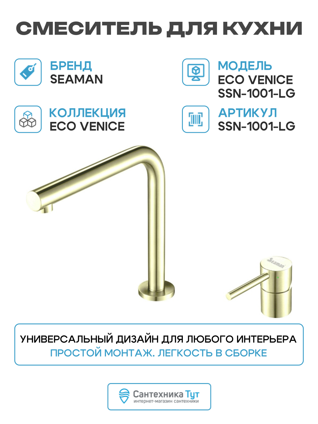 Смеситель для кухни Seaman Eco Venice SSN-1001-LG цвет Светлое золото сатин: сравнение цен, характеристики, фото, актуальное наличие и цены.