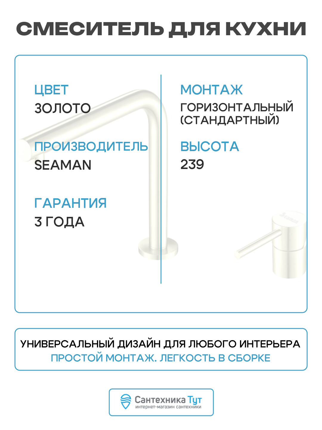 Купить Смеситель для кухни Seaman Eco Venice SSN-1001-LG цвет Светлое золото сатин с доставкой по всей России.