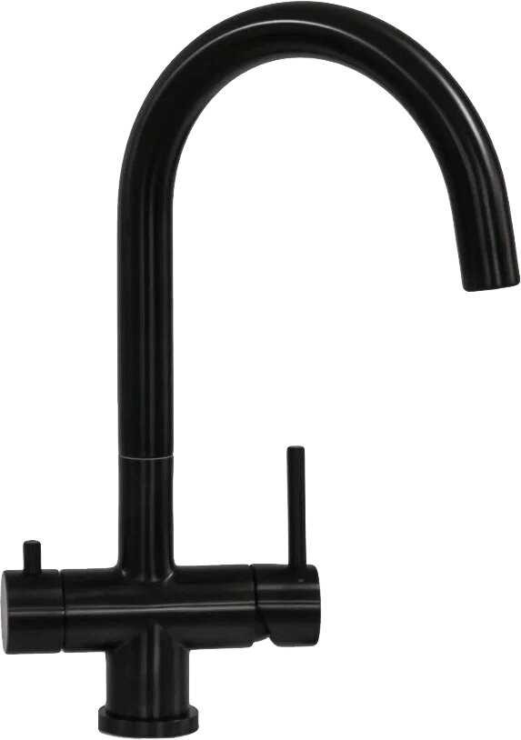 Смеситель для кухни Seaman Eco Venice SSN-1338-DG с краном для питьевой воды, с поворотным изливом, черный, матовый, однорычажный, нержавеющая сталь, с керамическим картриджем