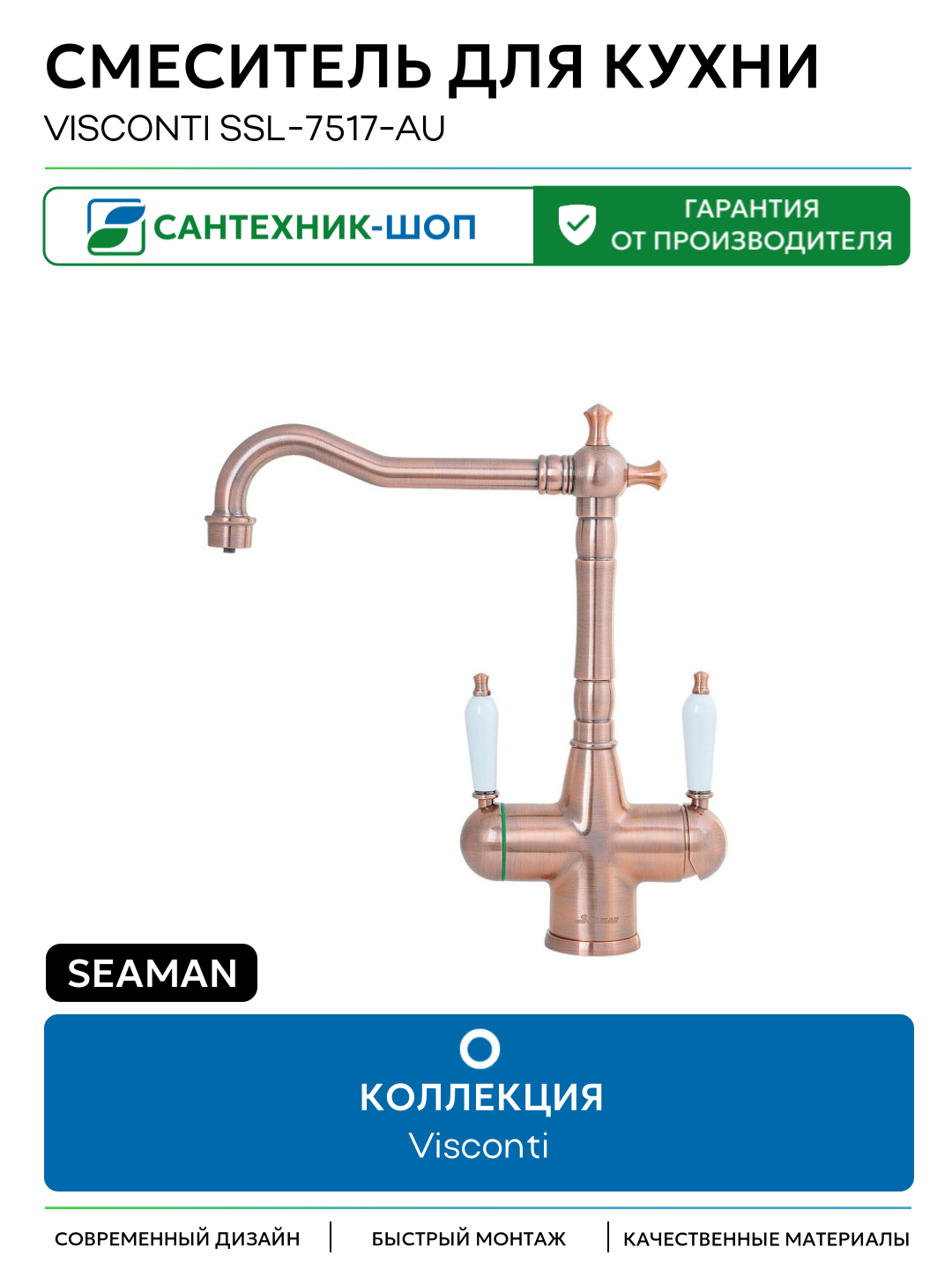 Смеситель для кухни Seaman Visconti SSL-7517-AU цвет Красное золото Россия: сравнение цен, характеристики, фото, актуальное наличие и цены.