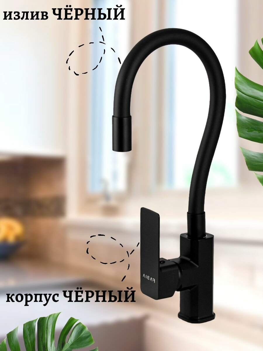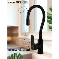Смеситель для кухни, шаровый, с гибким черным изливом , корпус квадратный, цвет черный: сравнение цен, характеристики, фото, актуальное наличие и цены.