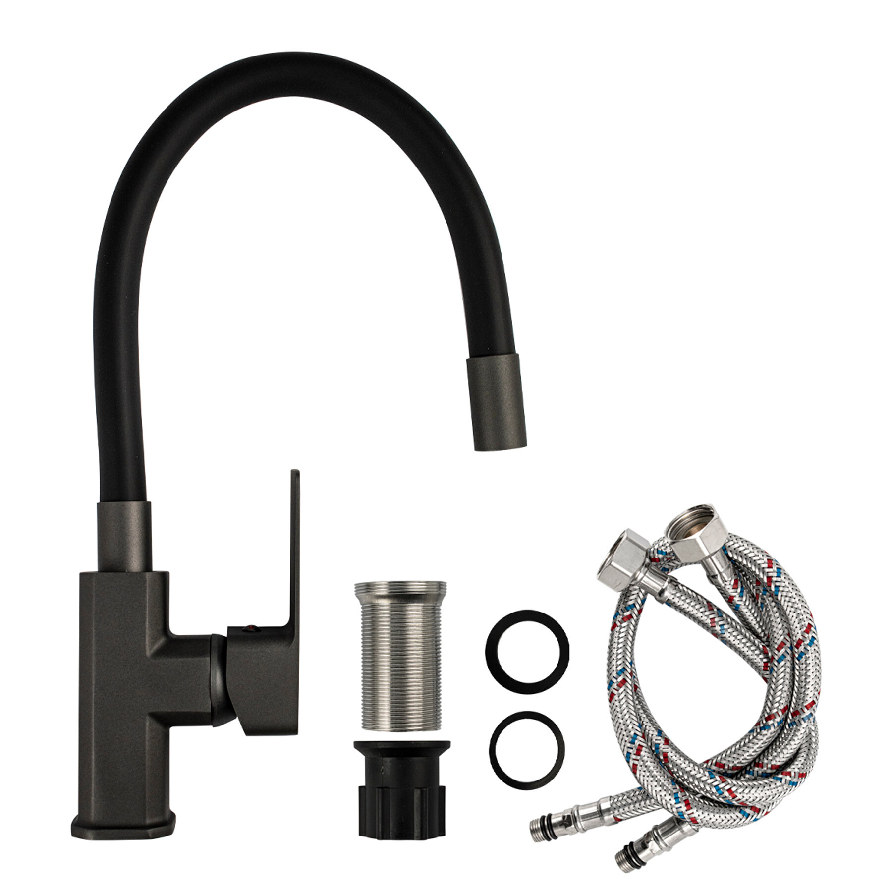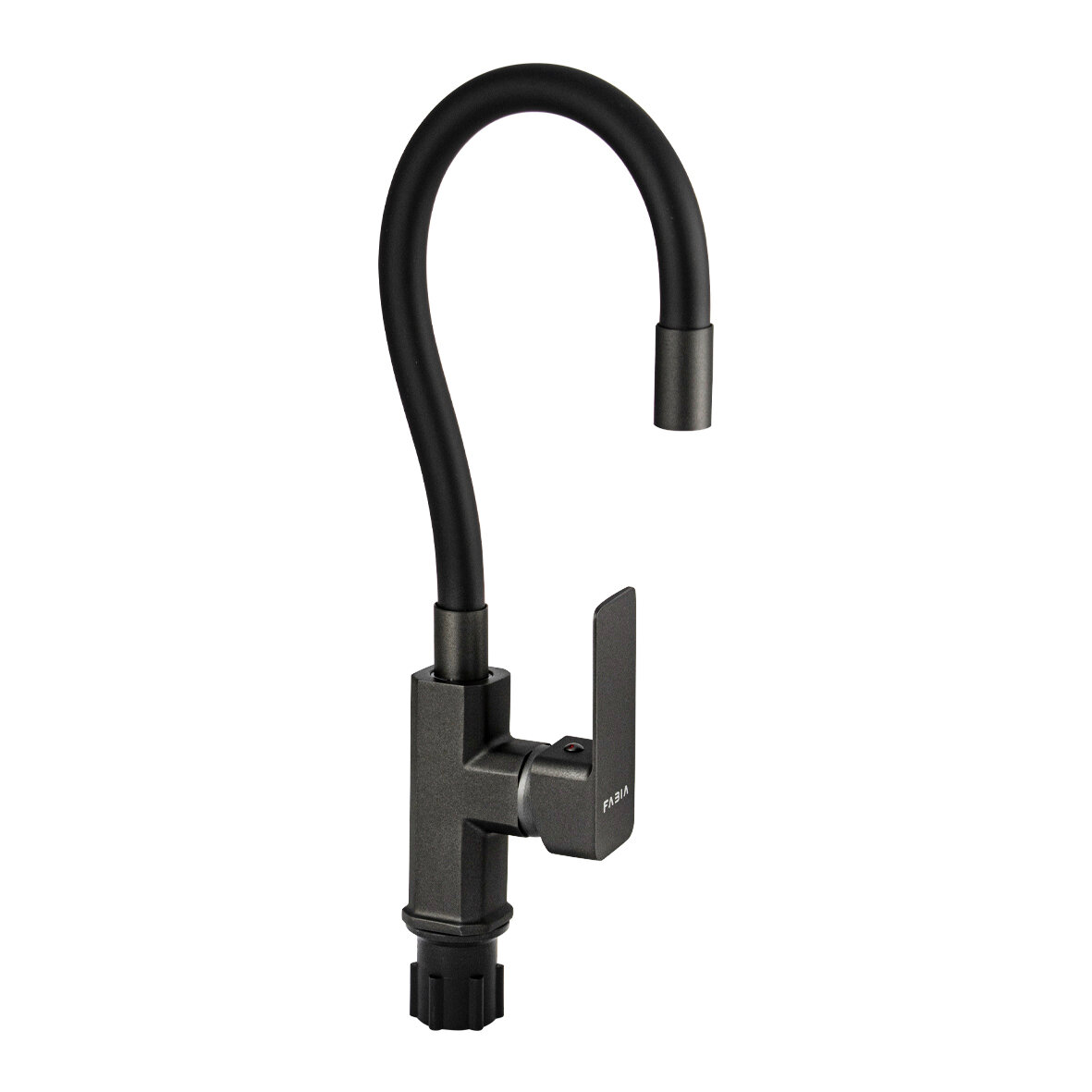 Купить Смеситель для кухни, шаровый, с гибким черным изливом, корпус квадратный, цвет графит , FABIA 9657 с доставкой по всей России.