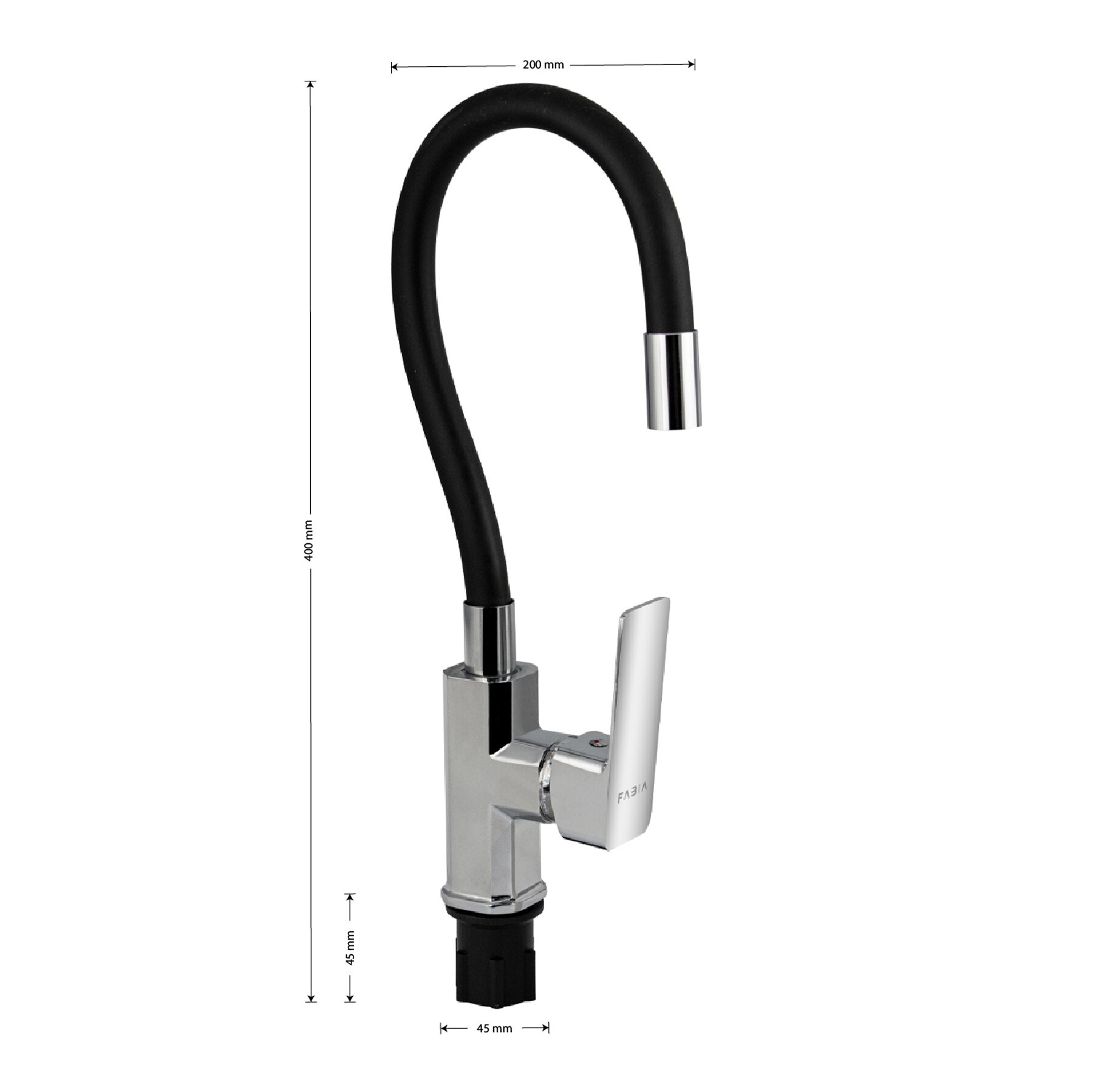 Смеситель для кухни, шаровый, с гибким черным изливом, корпус квадратный, цвет хром, FABIA 9655: сравнение цен, характеристики, фото, актуальное наличие и цены.
