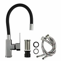 Смеситель для кухни, шаровый, с гибким черным изливом, корпус квадратный, цвет хром, FABIA 9655: сравнение цен, характеристики, фото, актуальное наличие и цены.