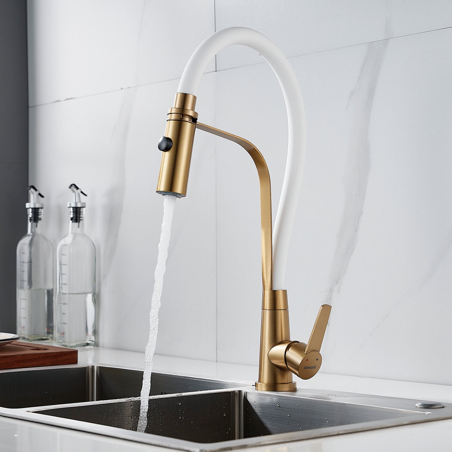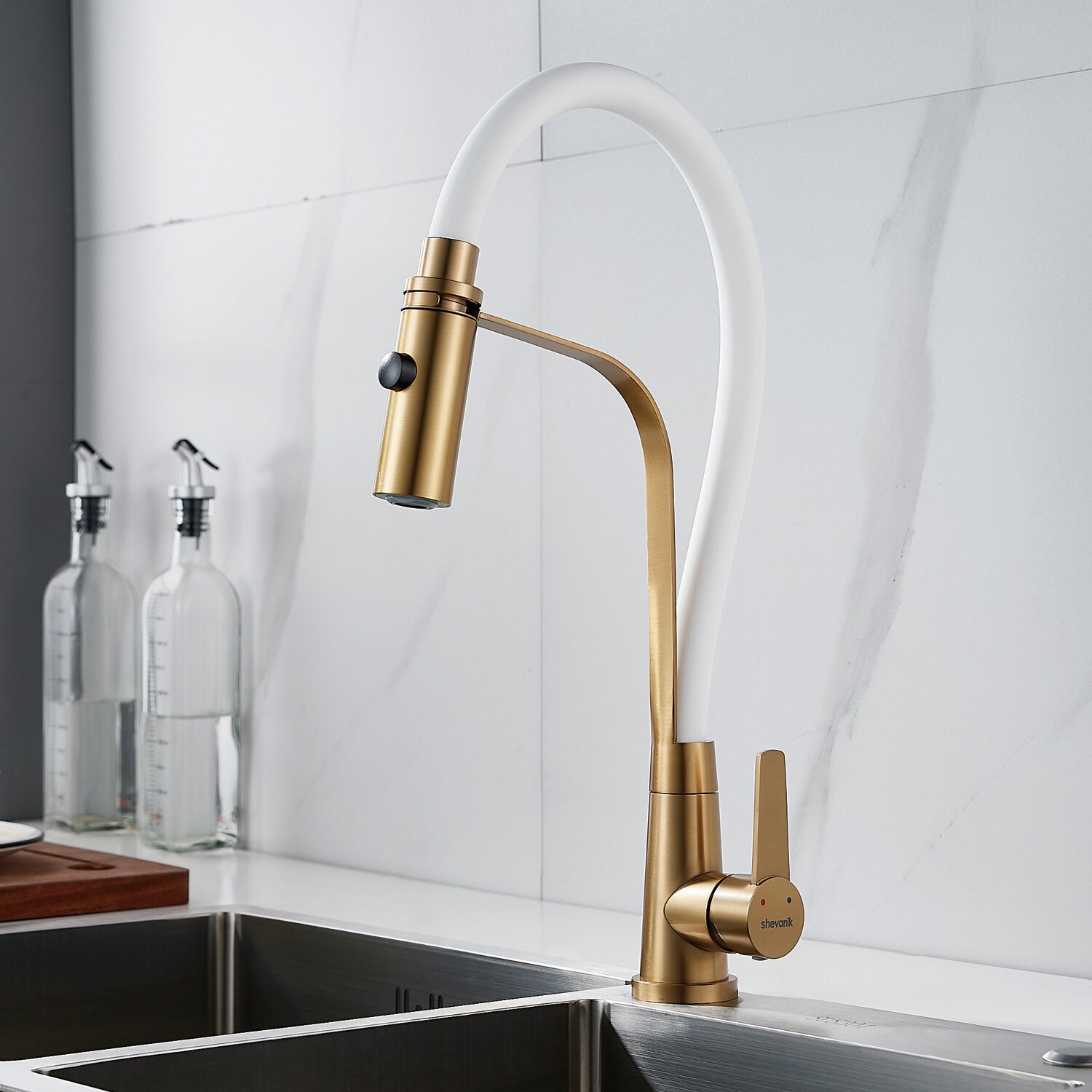 Смеситель для кухни Shevanik с гибким изливом, с выдвижным 2-х режимным аэратором, золотистый: сравнение цен, характеристики, фото, актуальное наличие и цены.