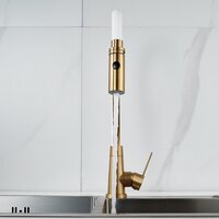 Смеситель для кухни Shevanik с гибким изливом, с выдвижным 2-х режимным аэратором, золотистый