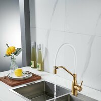 Смеситель для кухни Shevanik с гибким изливом, с выдвижным 2-х режимным аэратором, золотистый: сравнение цен, характеристики, фото, актуальное наличие и цены.