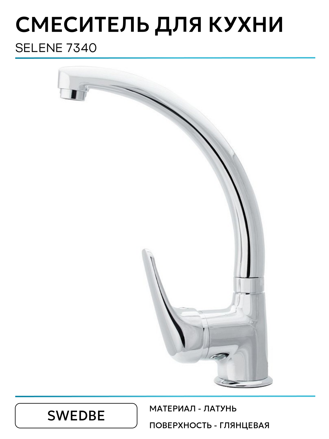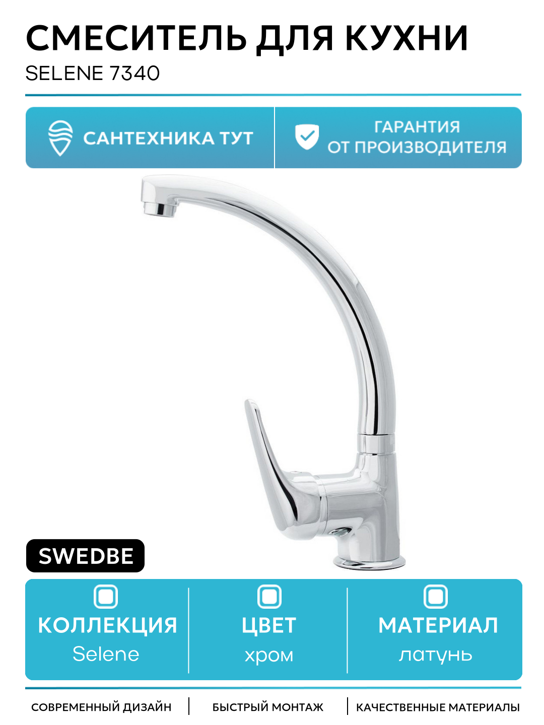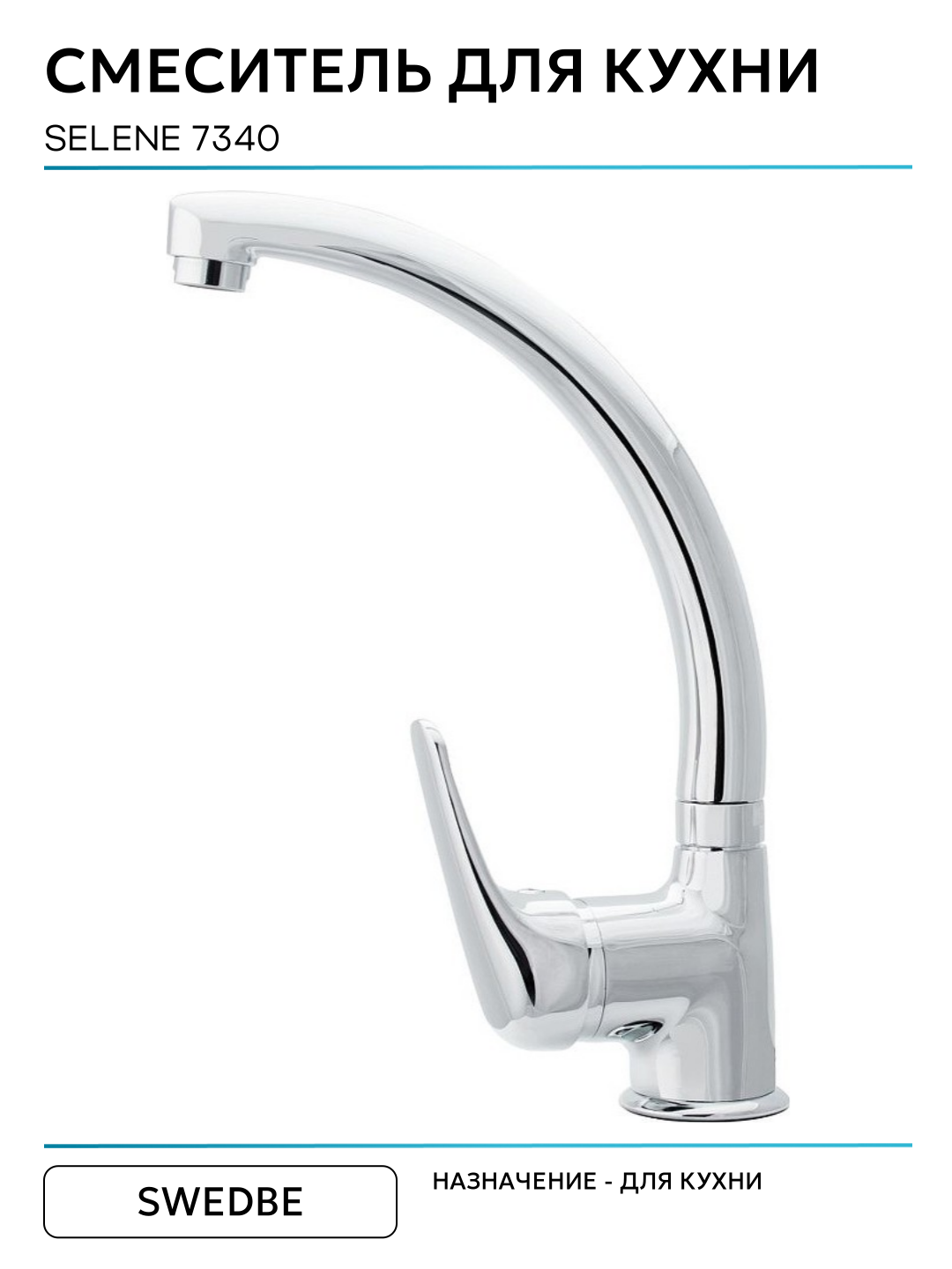 Купить Смеситель для кухни Swedbe Selene 7340 Хром латунь Швеция, стильный дизайн с доставкой по всей России.