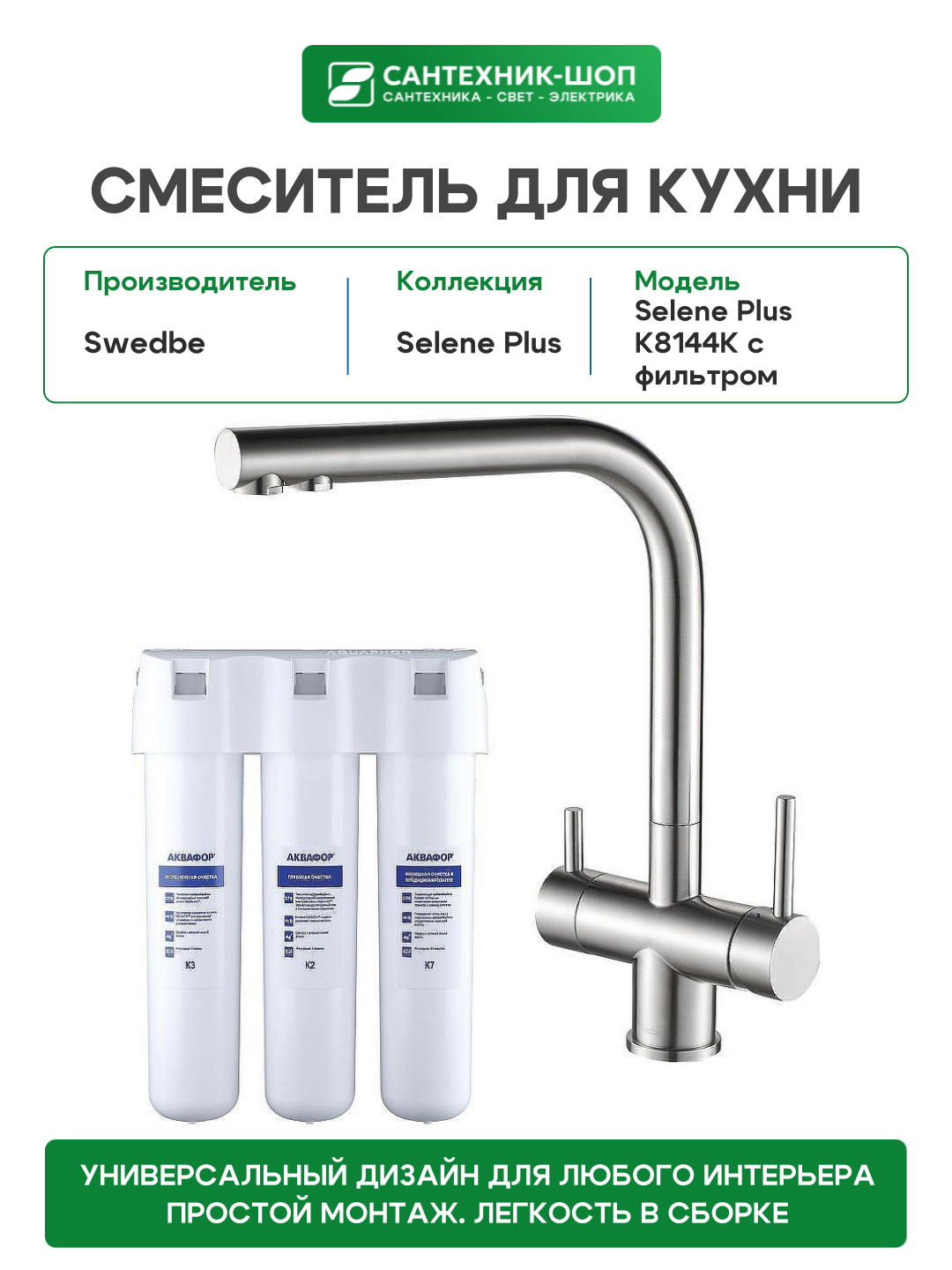 Смеситель для кухни Swedbe Selene Plus K8144K с фильтром Нержавеющая сталь нержавеющая сталь Швеция: сравнение цен, характеристики, фото, актуальное наличие и цены.