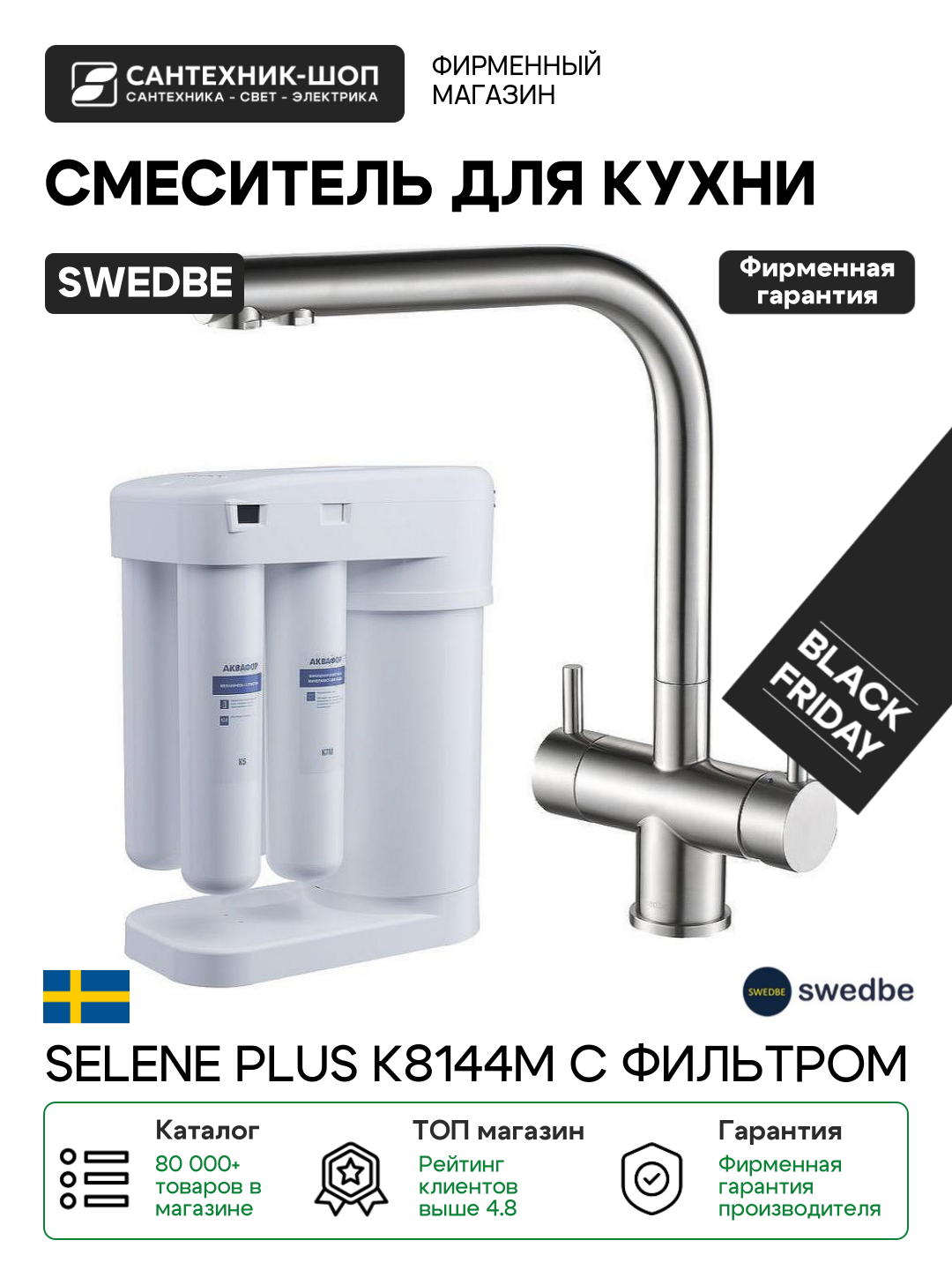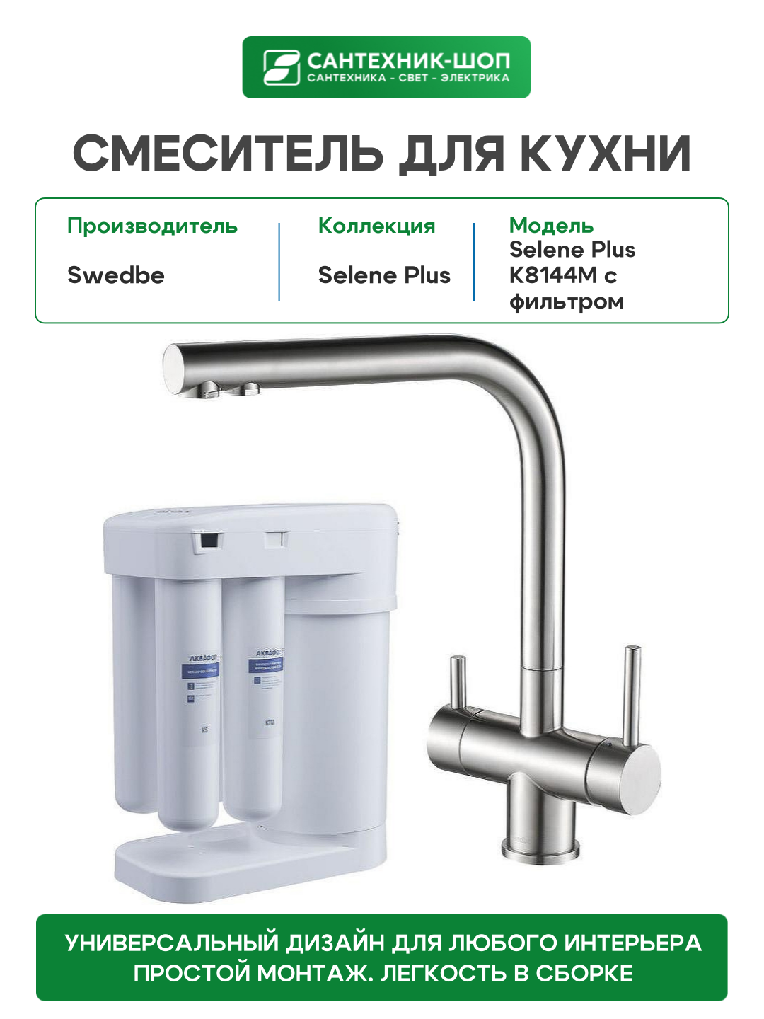 Смеситель для кухни Swedbe Selene Plus K8144M с фильтром Нержавеющая сталь нержавеющая сталь Швеция: сравнение цен, характеристики, фото, актуальное наличие и цены.