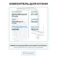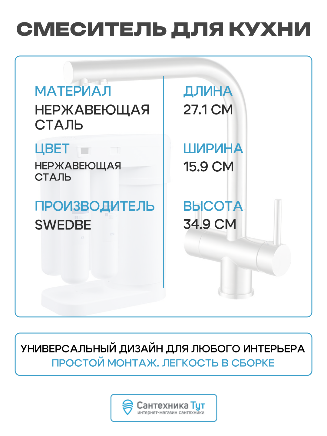 Смеситель для кухни Swedbe Selene Plus K8144M с комплектом фильтров для воды Аквафлор Морион. Смеситель изготовлен по европейским стандартам качества и экологического контроля. Предусмотрена дополнительная защита от протечек: установлены два уплотнительных кольца. Радиус поворота излива 360 градусов обеспечивает свободу действий: освобождает при необходимости пространство мойки и позволяет наполнить емкости водой в удобном для вас месте.