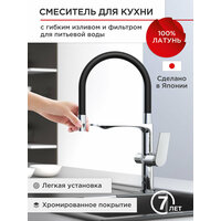 Смеситель обладает качественным встроенным фильтром для питьевой воды и надежным аэратором ABS Coin, который позволит сократить расход воды.