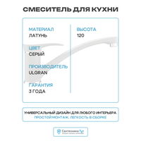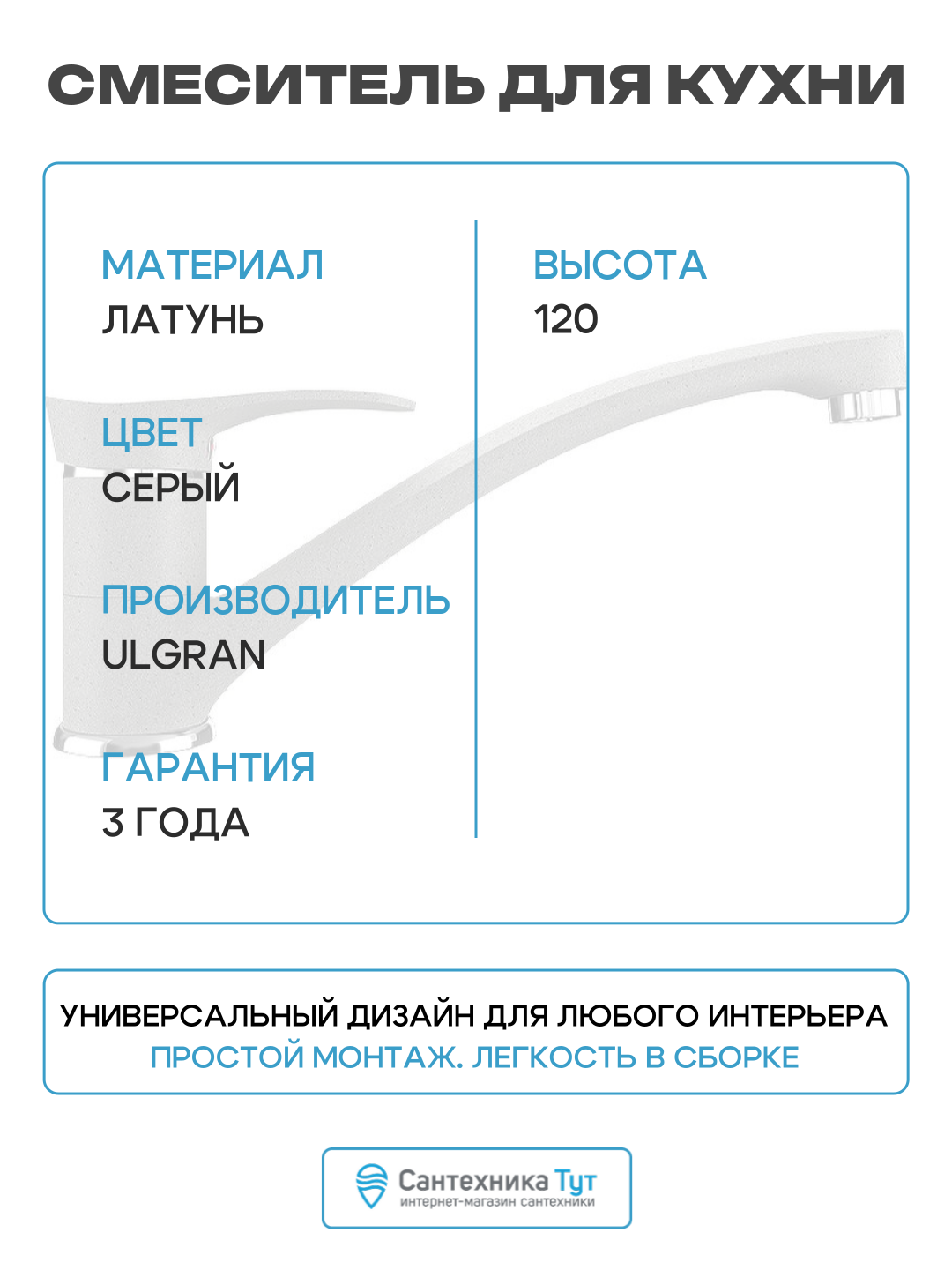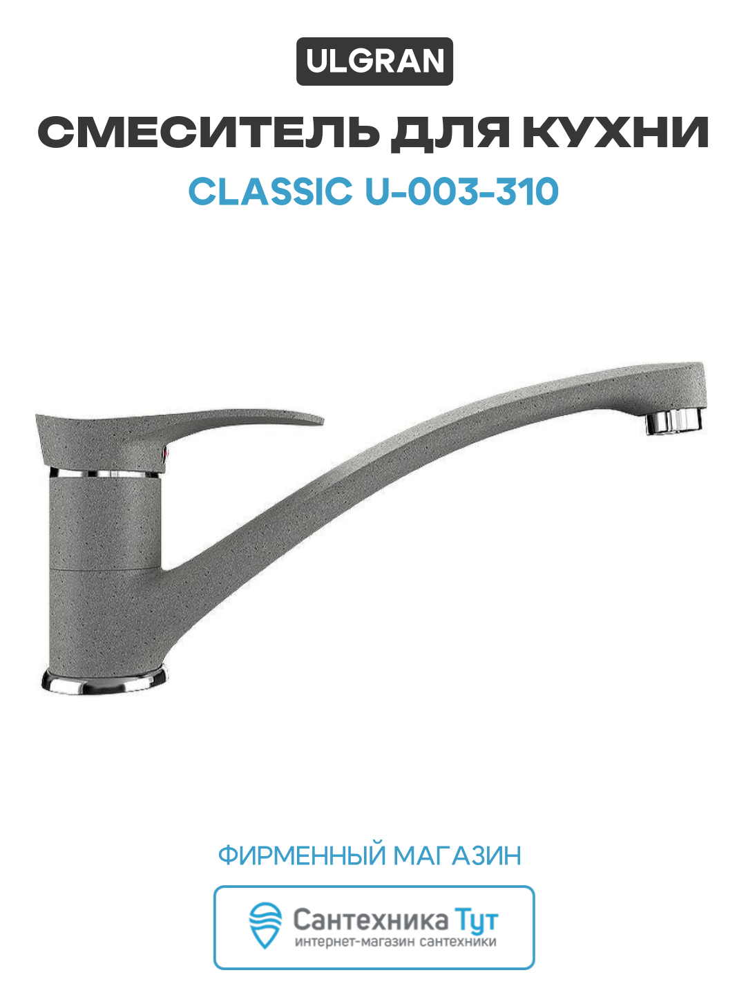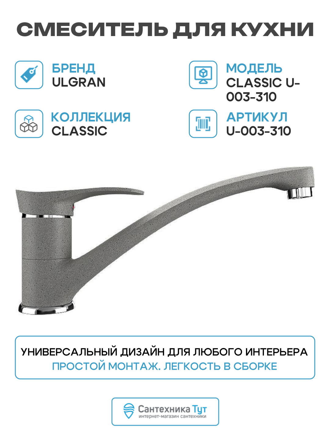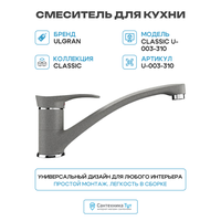 Смеситель для кухни Ulgran Classic U-003-310 Серый латунь Россия: сравнение цен, характеристики, фото, актуальное наличие и цены.