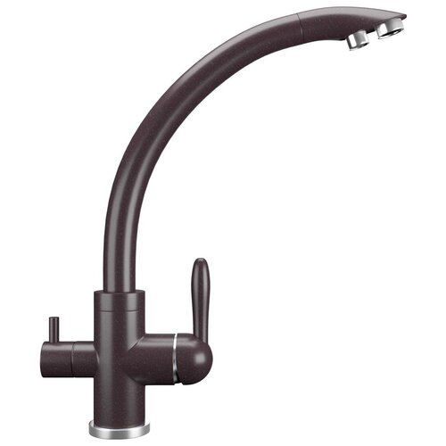 Реализован тройной подвод воды через один излив: холодная, горячая и фильтрованная. Переход с одного подвода на другой производится поворотом рычага.