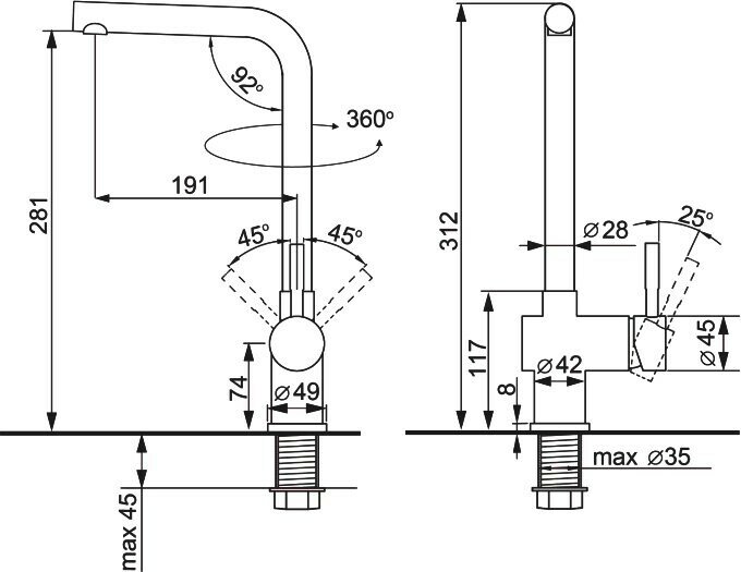 | Излив | выдвижной, гибкий, для фильтрованной воды, поворотный |