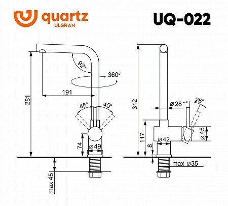Смеситель для кухни Ulgran UQ-022-04, платина: сравнение цен, характеристики, фото, актуальное наличие и цены.