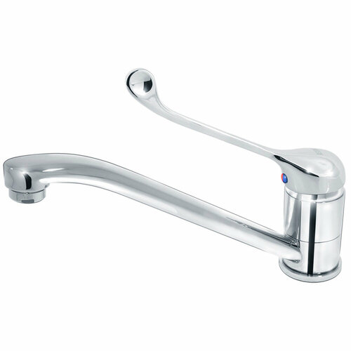 Локтевой смеситель удобен в использовании медицинским работникам, а также лицам с ограниченными возможностями. Удлиненная эргономичная рукоятка позволяет регулировать напор и температуру воды при помощи локтя или запястья. Длина излива: 135 мм Подводка: 1/2 дюйма Ширина: 53 мм Высота: 230-280 мм Глубина: 270 мм Картридж: d40 Цвет: хром Материал корпуса: латунь ЛС59-1, ЛС63 Ресурс: 500 000 циклов переключения