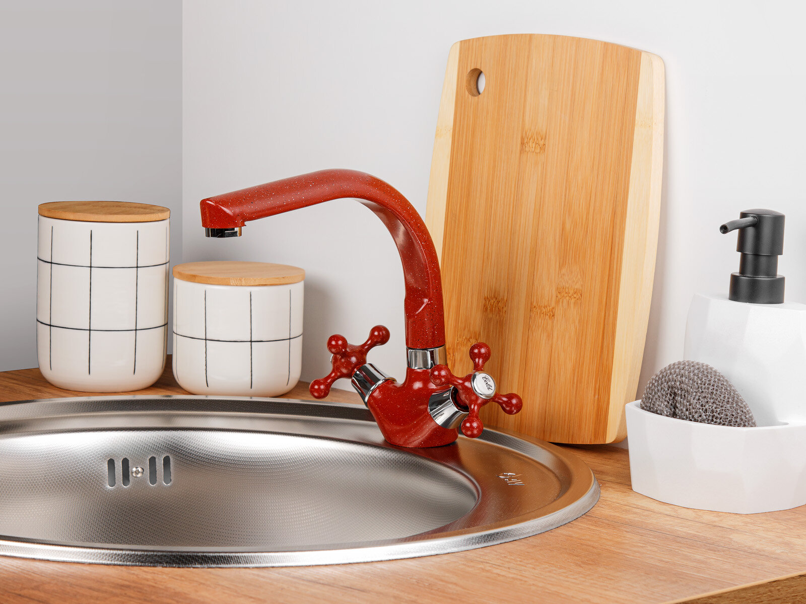 Смеситель для кухни вентильный серия 230 ECONOCE, красный с поворотным J-изливом (EC0235): сравнение цен, характеристики, фото, актуальное наличие и цены.