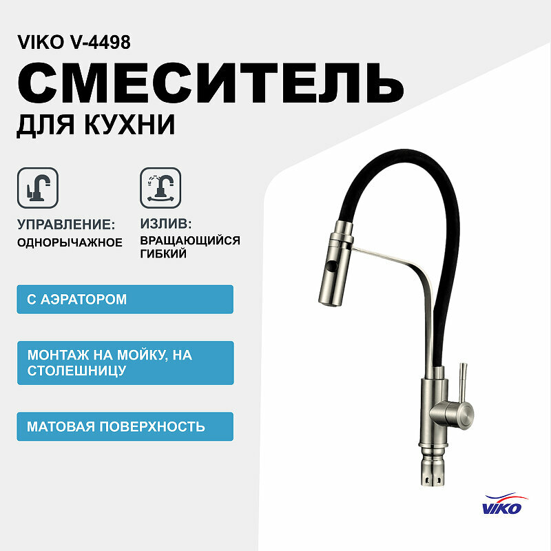 Смеситель для кухни VIKO с гибким изливом (V-4498)