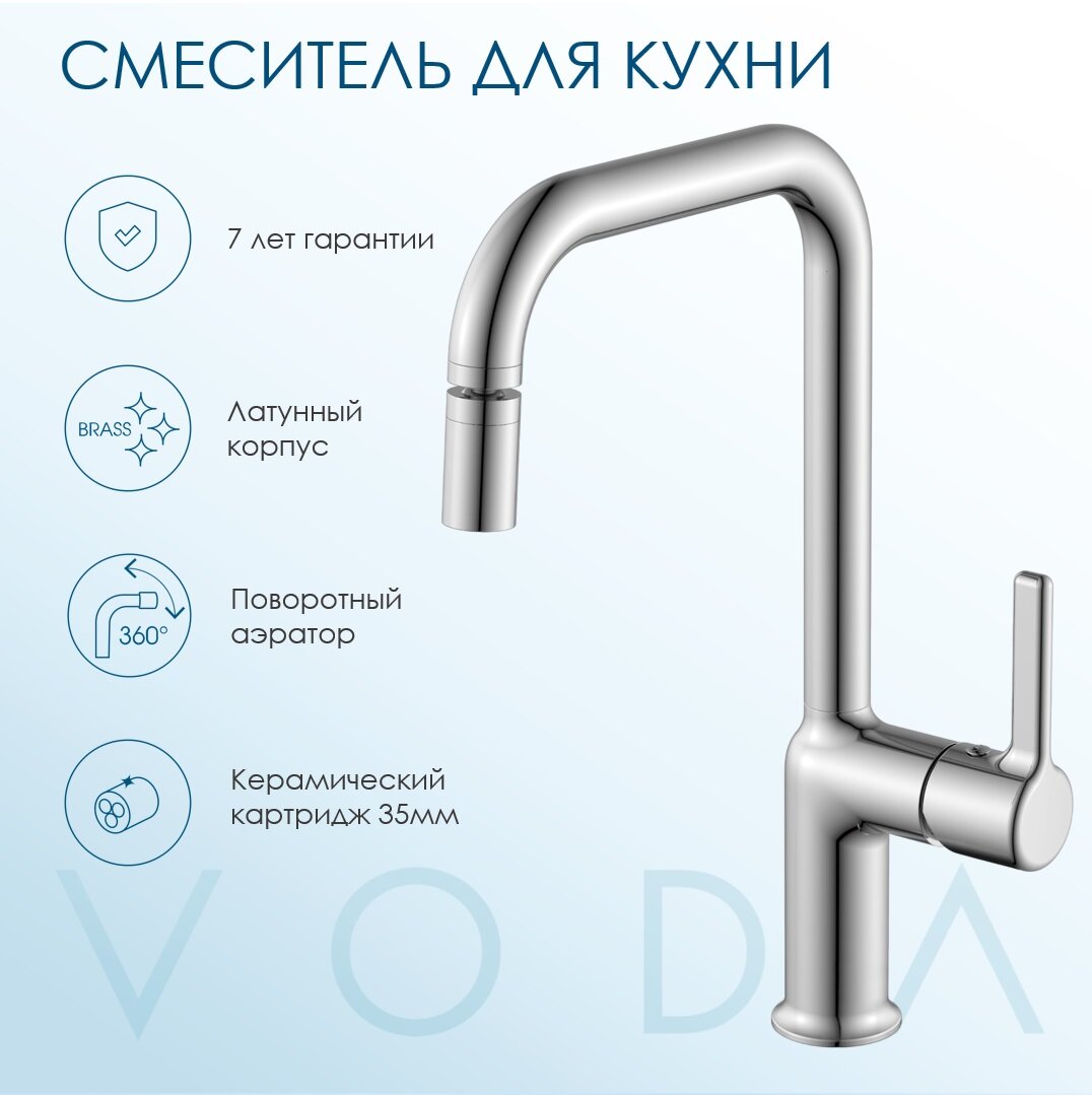 Смеситель для кухни VODA CLM519 с поворотным изливом и подвижным аэратором на шарнире / нержавеющая сталь: сравнение цен, характеристики, фото, актуальное наличие и цены.