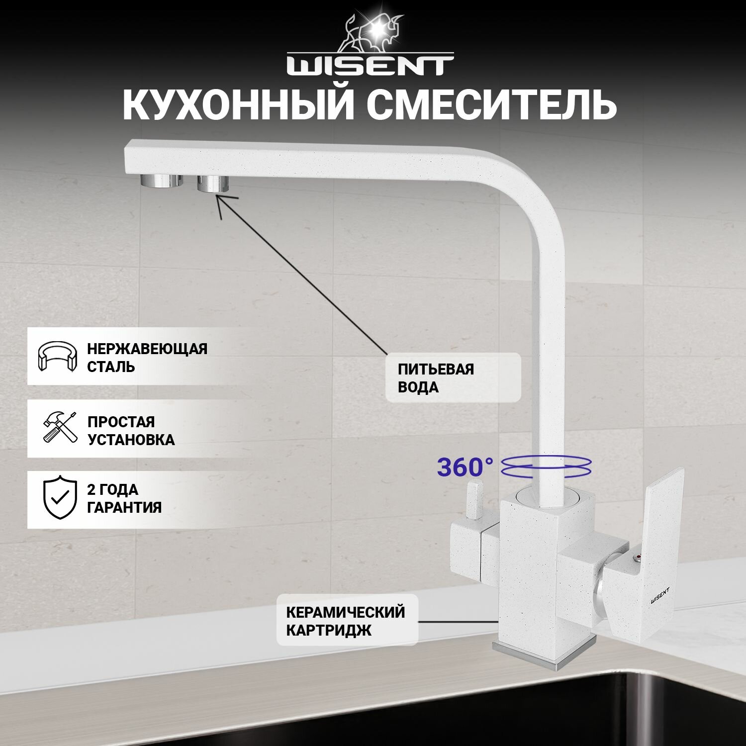 Купить Смеситель для кухни с фильтром для питьевой воды (белый) WISENT W4333-3-18 с доставкой по всей России.