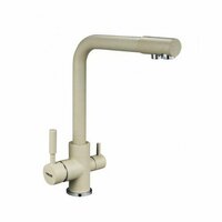 Такой смеситель не оставляет разводов от воды. Смеситель на кухню имеет два носика излива для подачи проточной и питьевой воды.