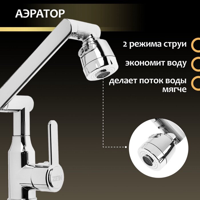 Смеситель для кухни ZEIN Z3707, регулируемый излив высотой 25 см, аэратор 2 режима, хром: сравнение цен, характеристики, фото, актуальное наличие и цены.