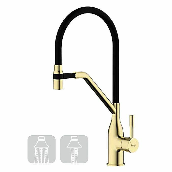 Смеситель для кухонной мойки Frap H97-3 F4497-3 с гибким изливом в сатиновом золотом цвете станет стильным и практичным дополнением вашей кухни.