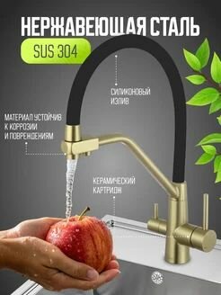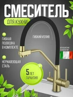 Купить Смеситель для кухонной мойки под фильтр питьевой воды, золото/ черный с доставкой по всей России. Смеситель для кухонной мойки под фильтр питьевой воды, золото/ черный: сравнение цен, характеристики, фото, актуальное наличие и цены.