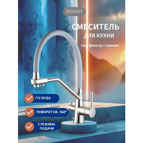 Смеситель для кухонной мойки под фильтр с краном для питьевой воды и гибким изливом/серый/силикон: сравнение цен, характеристики, фото, актуальное наличие и цены.
