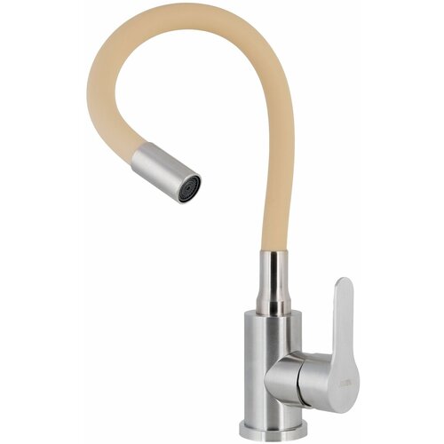Смеситель для кухонной мойки с гибким силиконовым изливом, нержавеющая сталь, бежевый, сатин