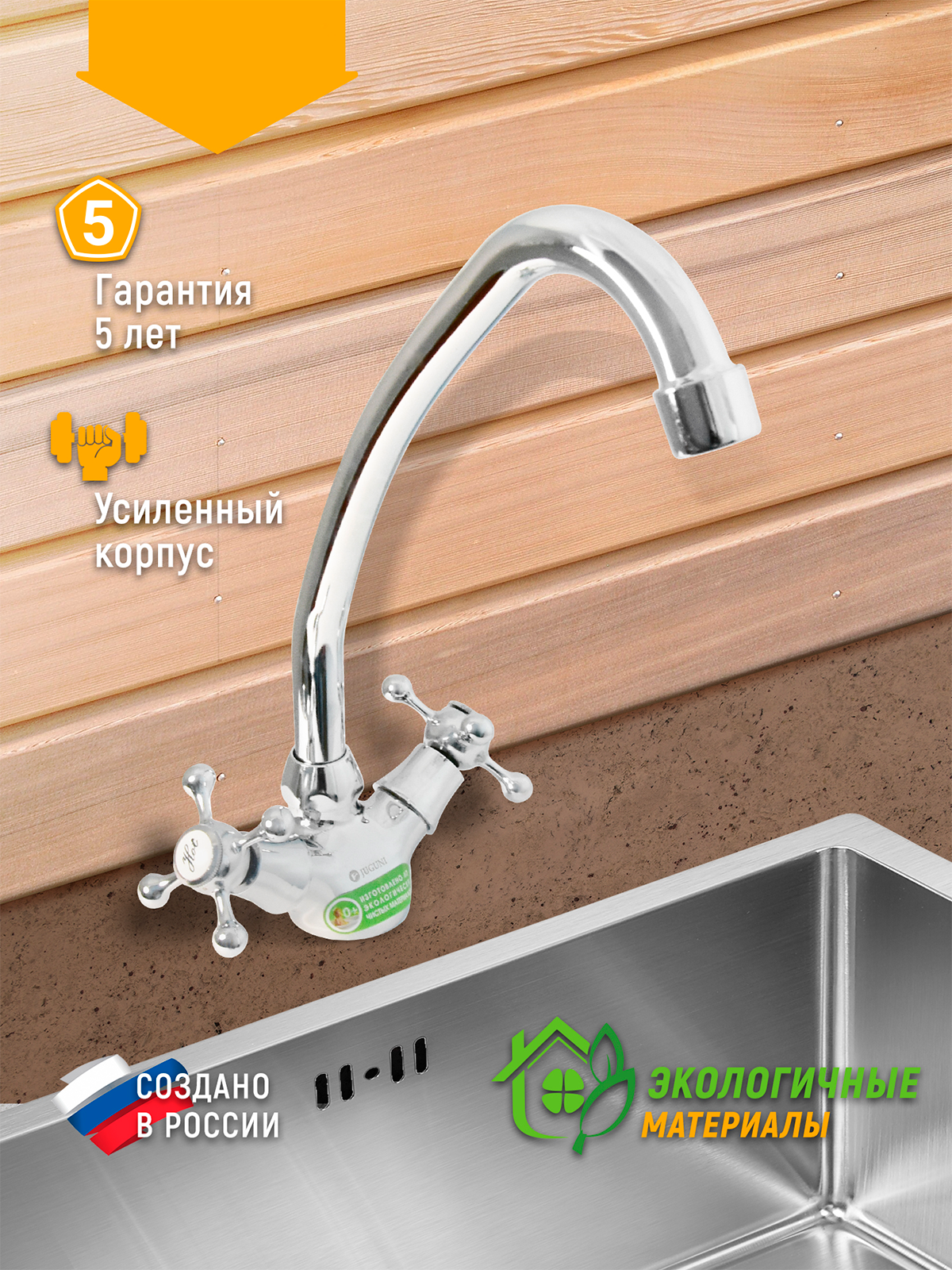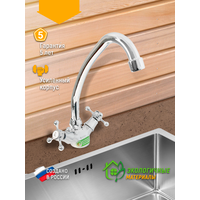 Купить Смеситель для мойки двуручный Juguni с поворотным изливом, керам. кран букса, гайка с доставкой по всей России.