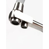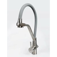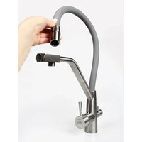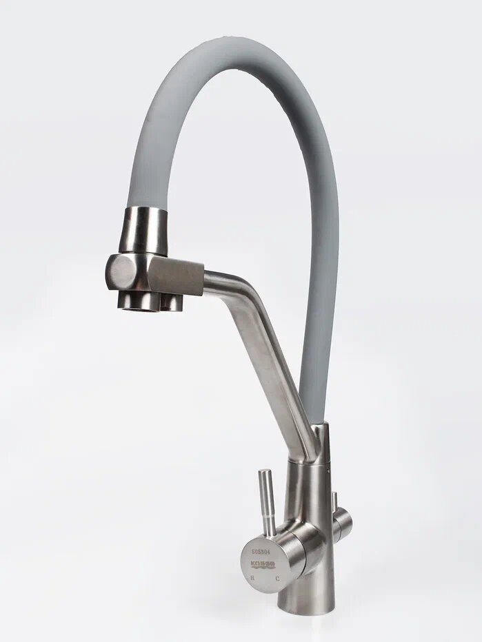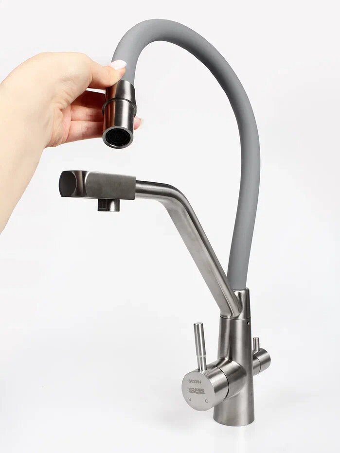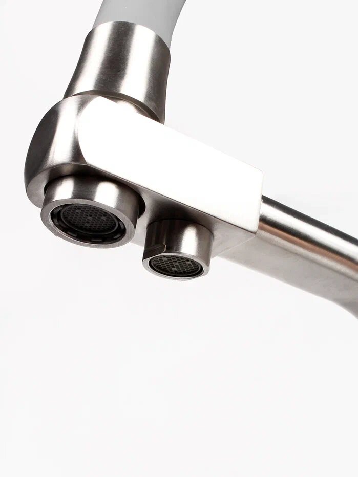 Данный смеситель для кухни имеет подключение под фильтр для питьевой воды, что делает смеситель не только важным атрибутом на кухне, но и полезным. Смеситель сделан из нержавеющая сталь, а встроенный аэратор способен экономно расходовать воду, что значительно уменьшит расходы по коммунальным услугам . Излив смесителя сделан из прочного и гибкого материала, который позволяет не только поворачивать излив на 360°, но и выгибать его под нужный угол. Наши смесители не только удобны в использовании, но и очень практичны и безопасны для здоровья.