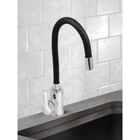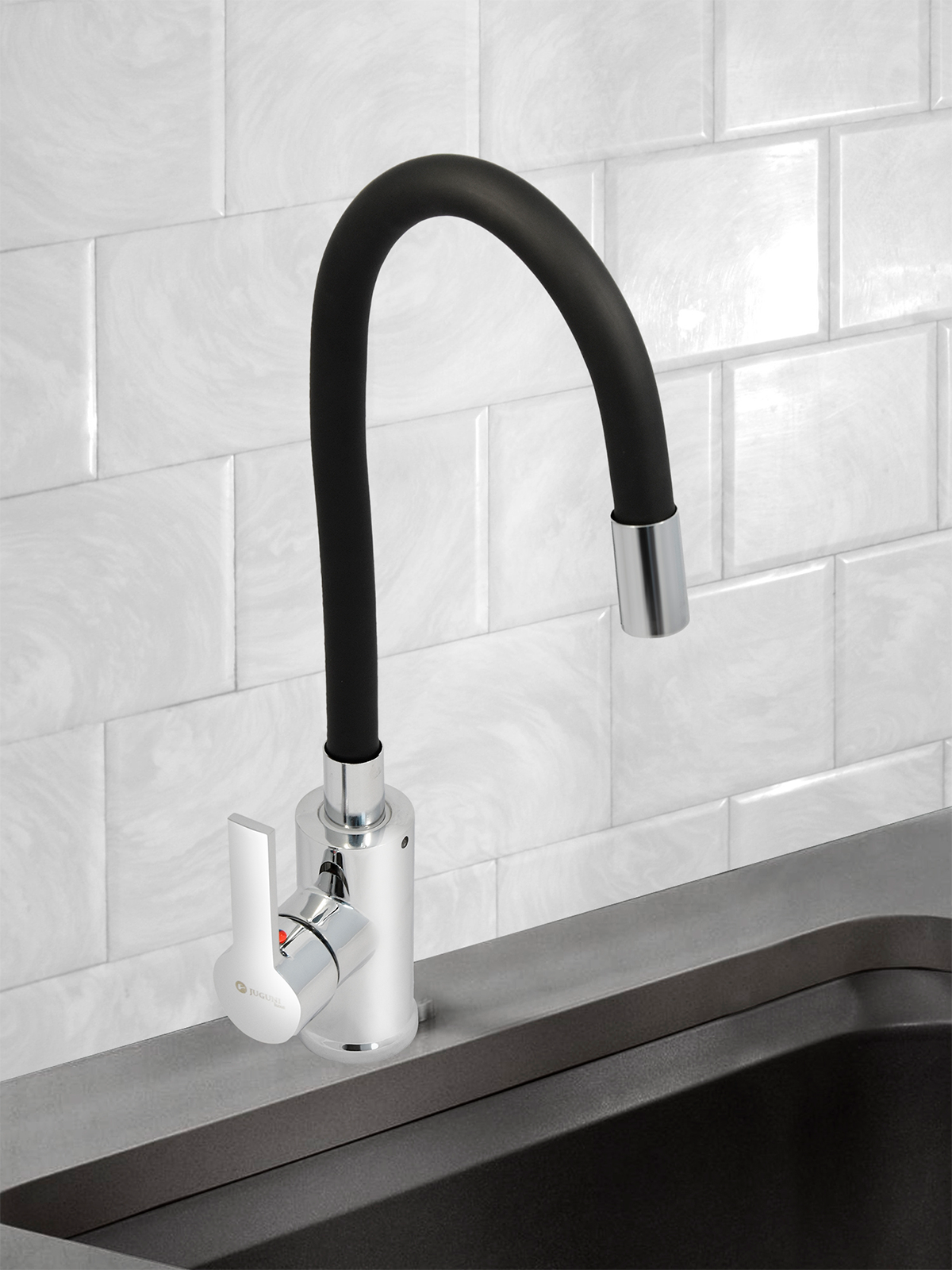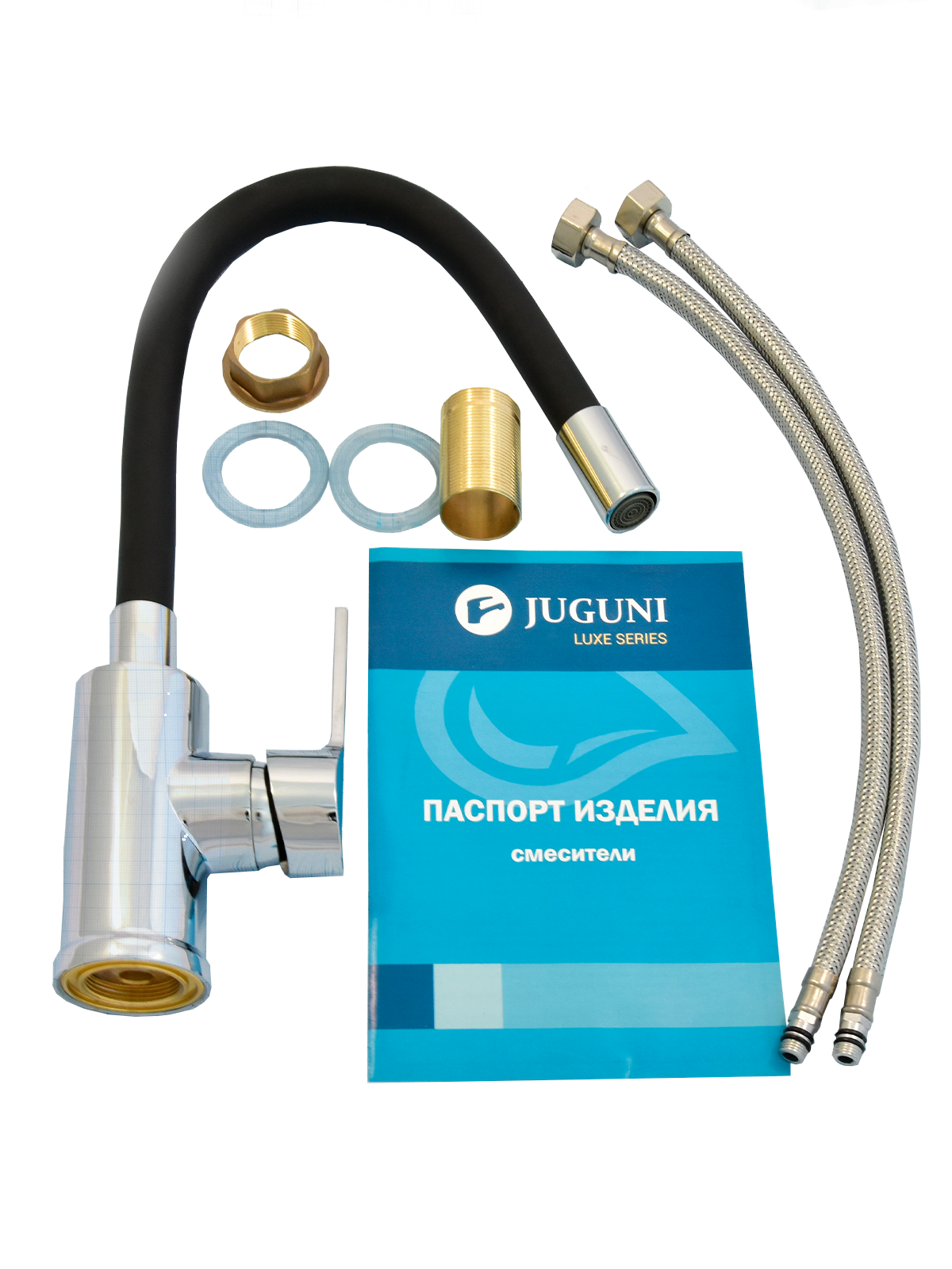 Жизнь современного человека трудно представить без разнообразных бытовых и сантехнических устройств. Все они предназначены для того, чтобы сделать её проще, комфортнее. Один из таких аксессуаров — смеситель. Смеситель представляет собой сантехническое изделие, необходимое для смешивания холодной и горячей воды. Кроме того, с его помощью можно регулировать интенсивность струи и её направление. Комплектация: Смеситель. Гибкая подводка. Крепление. Характеристики: Тип смесителя: однорычажный. Назначение: для кухни. Материал: силумин. Цвет: черный. Тип картриджа: керамический. Диаметр картриджа: 35 мм. Длина излива: 20 см. Высота излива: 22 см. Вид излива: гибкий. Способ монтажа: горизонтальный, 1 отверстие. Преимущества: Данная модель позволяет с лёгкостью регулировать напор и температуру воды, с помощью однорычажного управления. Смеситель оснащается картриджем из керамики, которая сможет выдержать высокие нагрузки, а кроме этого функционирует с маленьким уровнем шума. Установка выполняется на одно отверстие для смесителя. Специальная сетка внутри устройства отфильтровывает разнообразные примеси. Смеситель выполнен в новом современном оформлении. Наличие аэратора в приборе помогает обеспечить равномерный поток воды, а также ее смягчение. При производстве смесителя используются только высококачественные материалы, что является гарантией долговечности. Корпус смесителя изготовлен из силумина, что прочно, практично, долговечно. Модель оснащена аэратором, который насыщает воду воздухом, понижает ее расход и препятствует проникновению песка и отложений. «Смеситель для кухни, Juguni, гибкий излив, с картриджем, черный, 0402.486» можно купить мелким, средним и крупным оптом по привлекательным ценам благодаря тому, что мы сотрудничаем с российскими и международными производителями напрямую, без посредников. Техническая информацияВысота излива, см 22 Длина излива, см 20 Бренд Juguni Страна производства Россия Назначение для кухни Материал корпуса силумин Лейка нет Способ монтажа горизонтальный Переключатель на фильтр нет Форма круглый Тип управления рычажный С водонагревателем проточного типа нет Цвет черный Вид излива гибкий Отверстия для монтажа 1 отверстие Стиль современный Запорный клапан керамический картридж Высокий излив да Поверхность глянцевый Размер излива средний