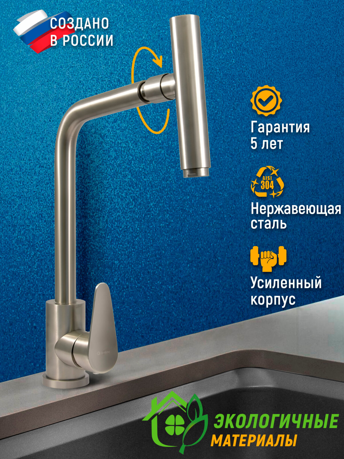 Купить Смеситель для мойки с высоким изливом, вращающийся аэратор, нерж. сталь AISI304, Juguni, 0402.169 с доставкой по всей России.