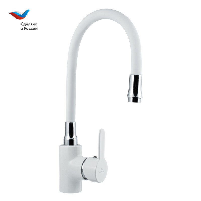 Купить Смеситель для мойки Славен СЛ-ЦВ-Ф26, с высоким изливом из силикона, одноручный, белый с доставкой по всей России.