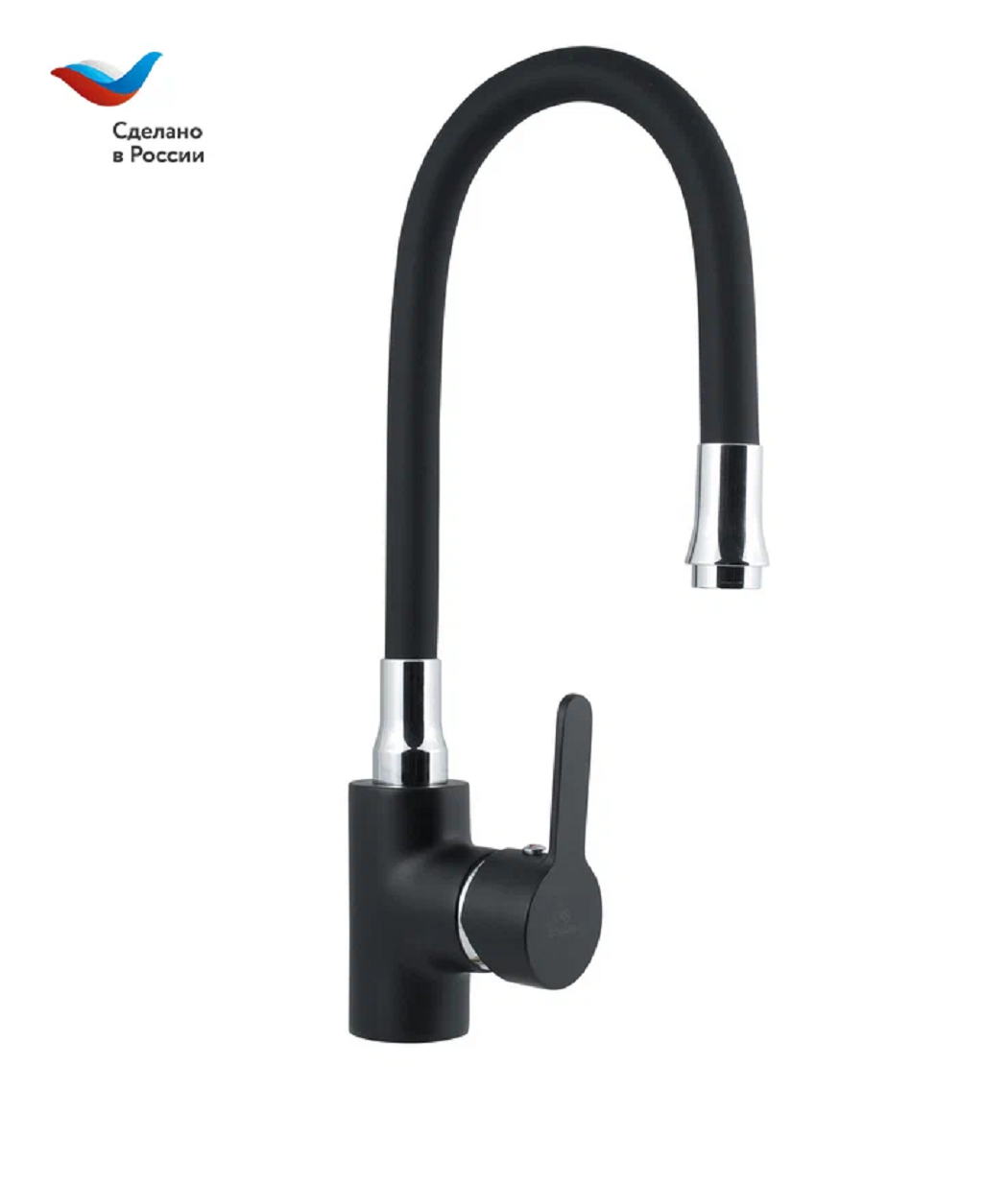 Купить Смеситель для мойки Славен СЛ-ЦВ-Ф27, с высоким изливом из силикона, одноручный, черный с доставкой по всей России.