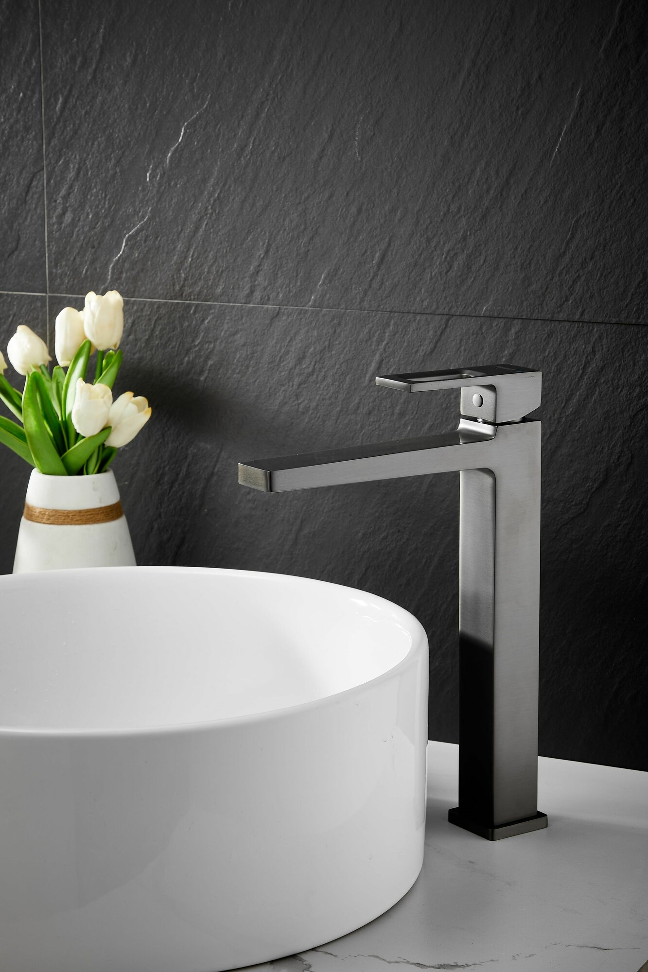 Однорычажный высокий смеситель BELZ для умывальника / раковины в ванную / мойку с длинным изливом и крепежом типа «гайка», изготовлен из высококачественной латуни по технологии литья в песчаную форму, что обеспечивает прочность корпуса и долговечную эксплуатацию. Стильный излив оснащен инновационным аэратором, который наполняет струю воздухом, благодаря чему обеспечивается существенная экономия воды. Пластиковая сеточка насадка, которая установлена на аэраторе, существенно понижает уровень шума. Она защищена от налёта извести, кальций на ней не откладывается, а если сетка засорилась, то её легко почистить. Керамический картридж d 26 мм с коротким ходом обеспечивает точную настройку температуры и напора воды. Эксплуатационный ресурс картриджа составляет более 150 тысяч циклов.