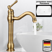 Смеситель для накладной раковины в ванную, ванны, с душем, душа, кухни, элегантный антикварный дизайн, Золото, 225 мм: сравнение цен, характеристики, фото, актуальное наличие и цены.
