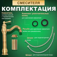 Купить Смеситель для накладной раковины в ванную, ванны, с душем, душа, кухни, элегантный антикварный дизайн, Золото, 225 мм с доставкой по всей России.
