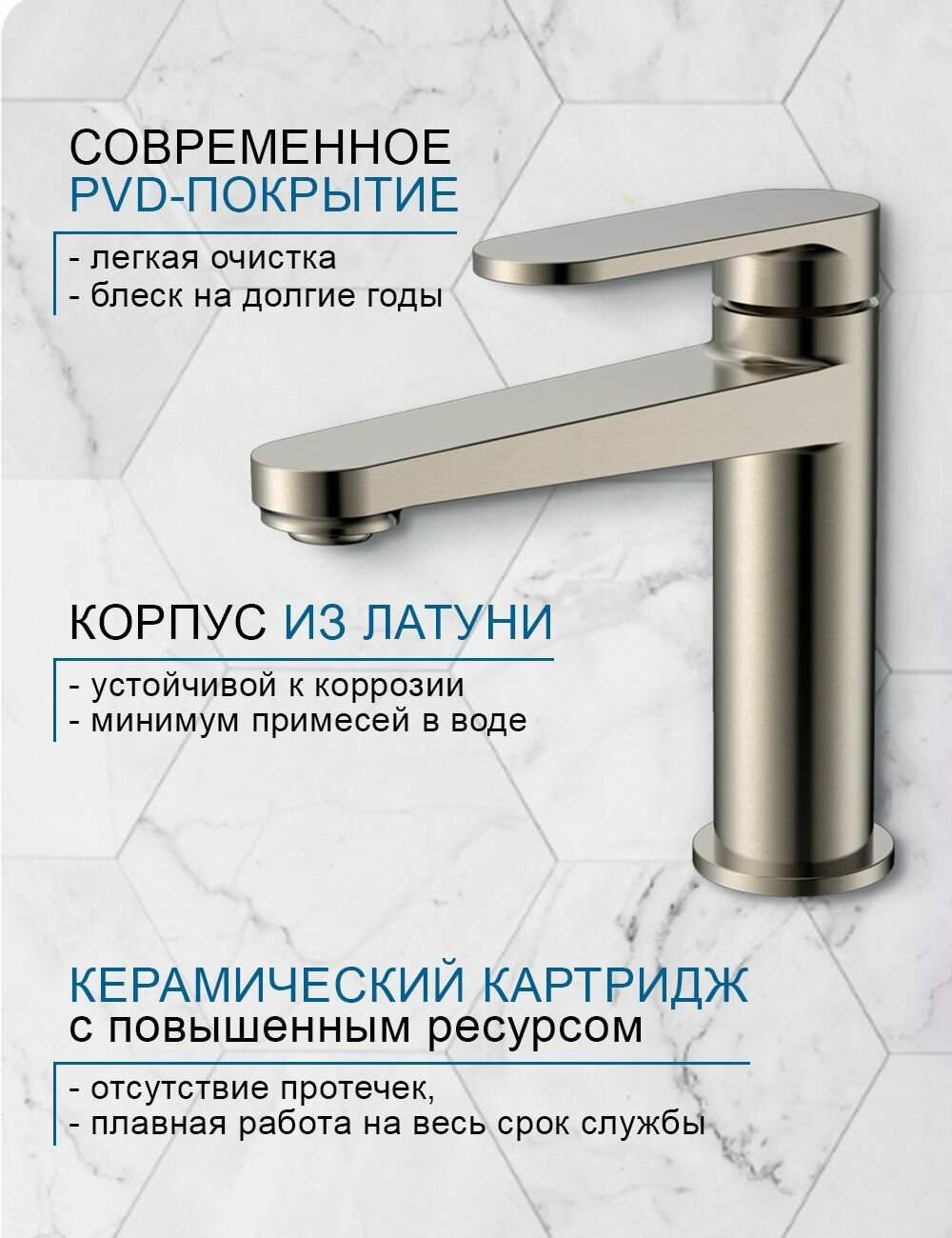 Купить Смеситель для раковины AQUAme Novara шлифованный никель AQM6910BN с доставкой по всей России.
