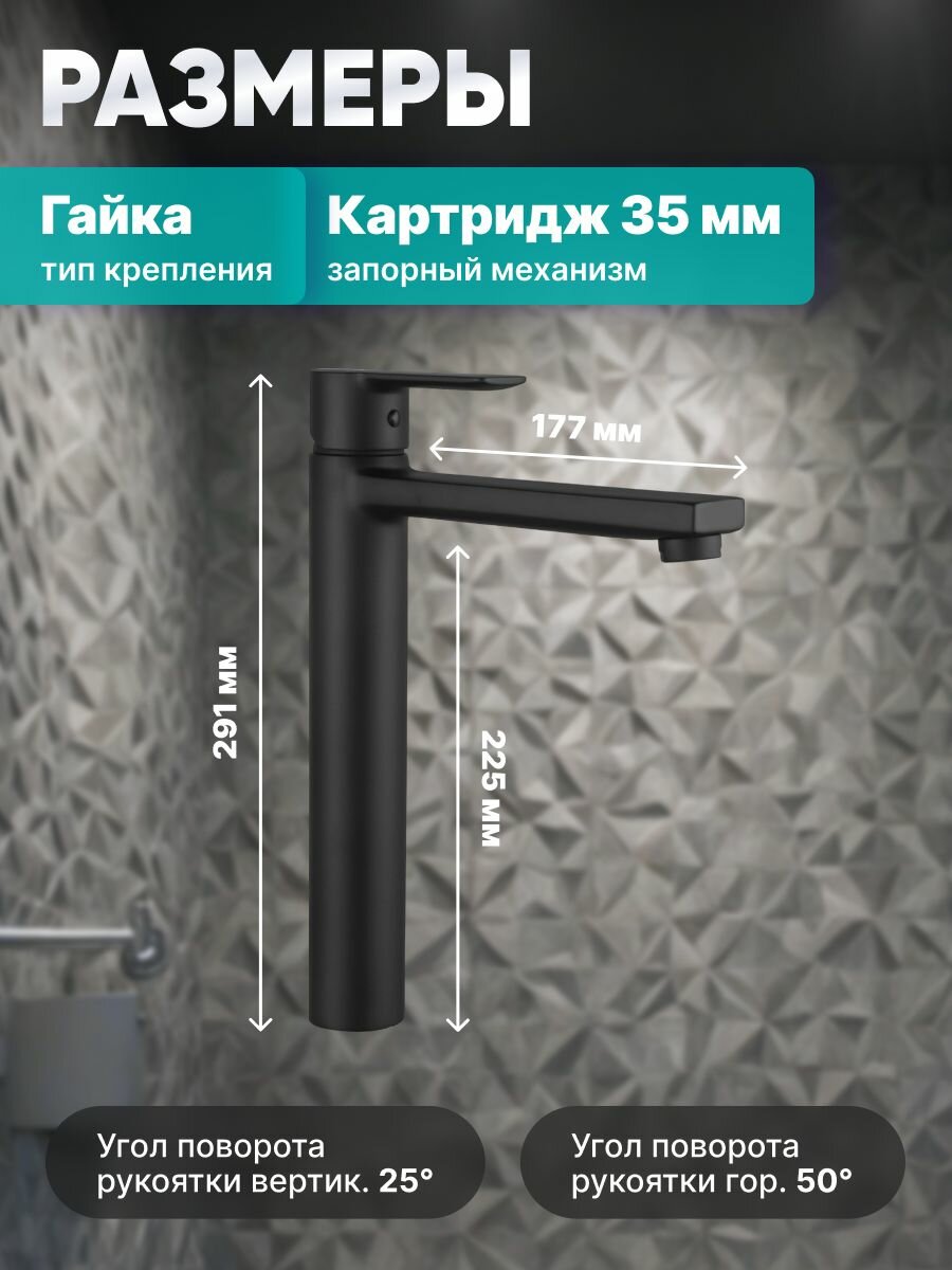 | Дополнительная информация | крепление - гайка, запорный механизм - картридж D35, угол поворота рукоятки вертикальный - 25°, горизонтальный - 50° |