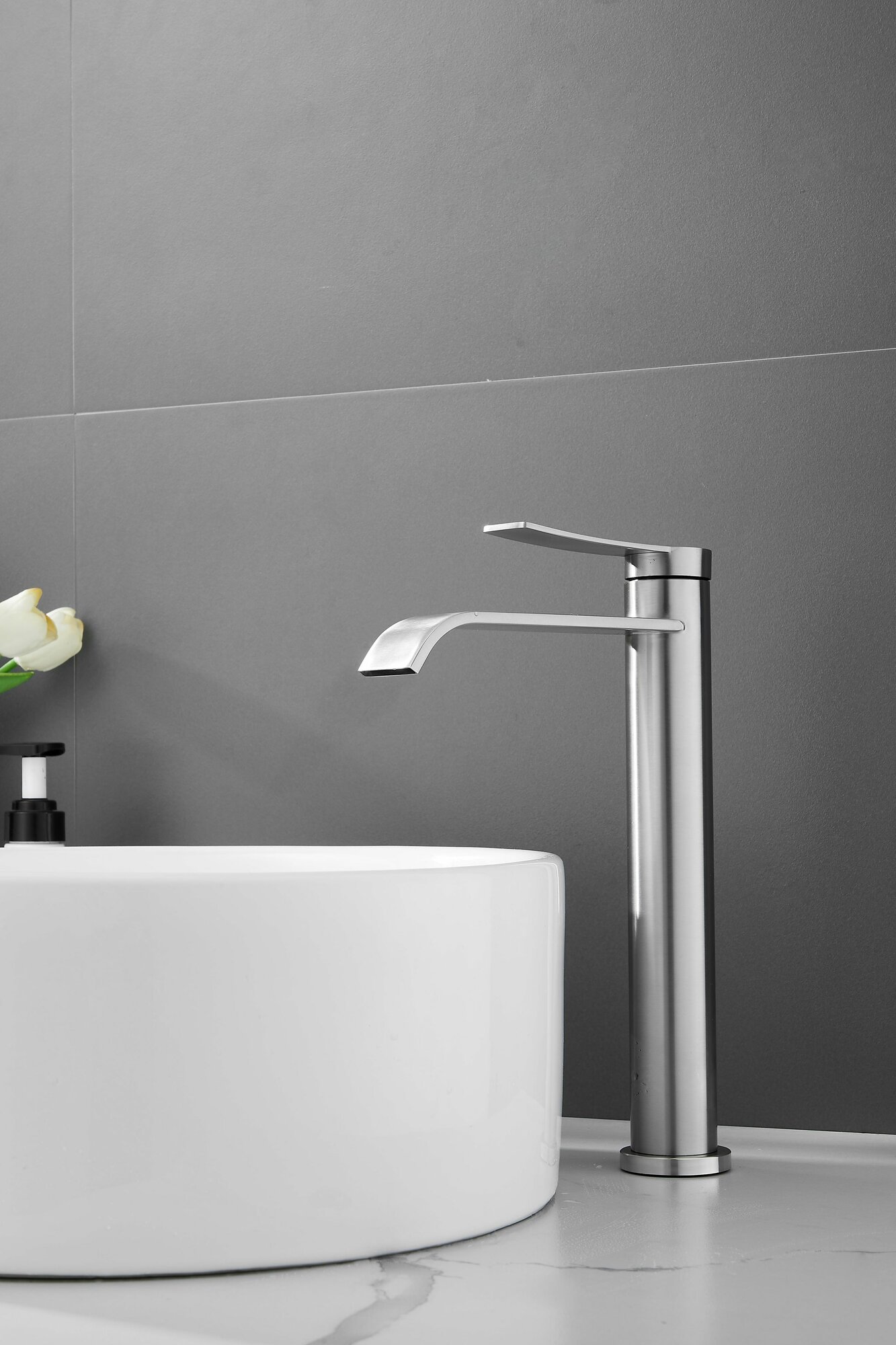 Смеситель для накладной раковины из нержавеющей стали, кран высокий на мойку с литым изливом BELZ B11812-1