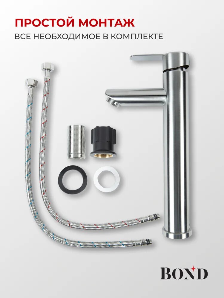 Смеситель для раковины BOND Smart B63-2700 из нержавеющей стали, матовый, российский: сравнение цен, характеристики, фото, актуальное наличие и цены.