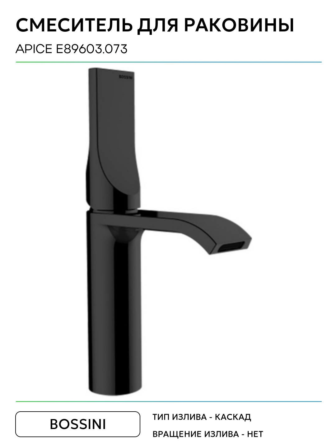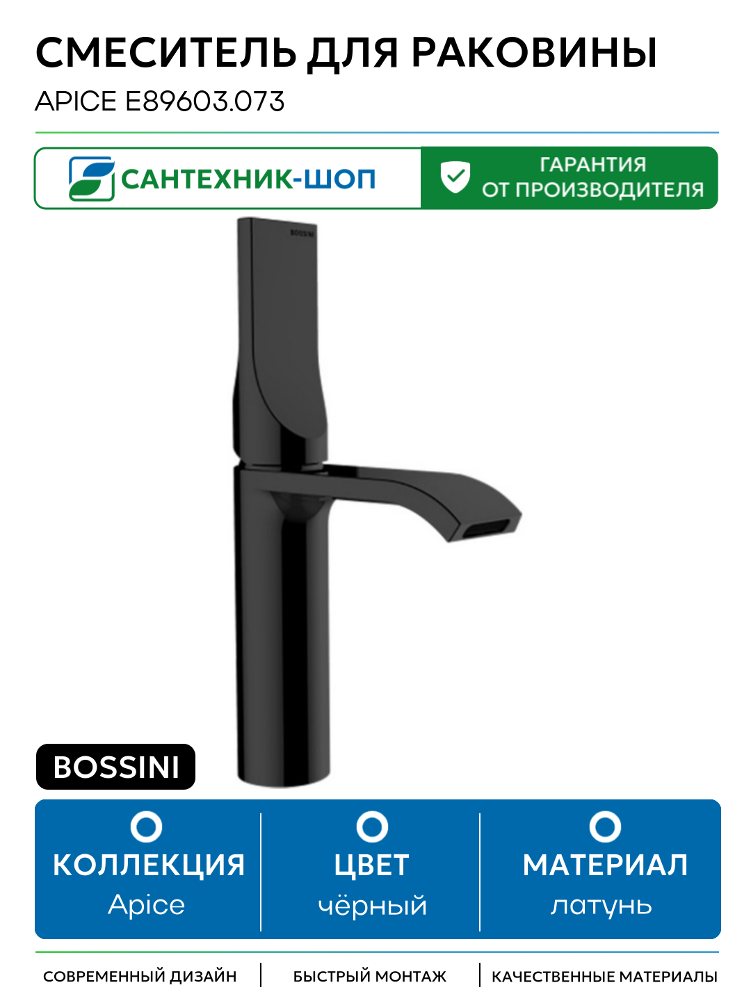 Смеситель для раковины Bossini Apice E89603.073 Черный матовый латунь Италия: сравнение цен, характеристики, фото, актуальное наличие и цены.