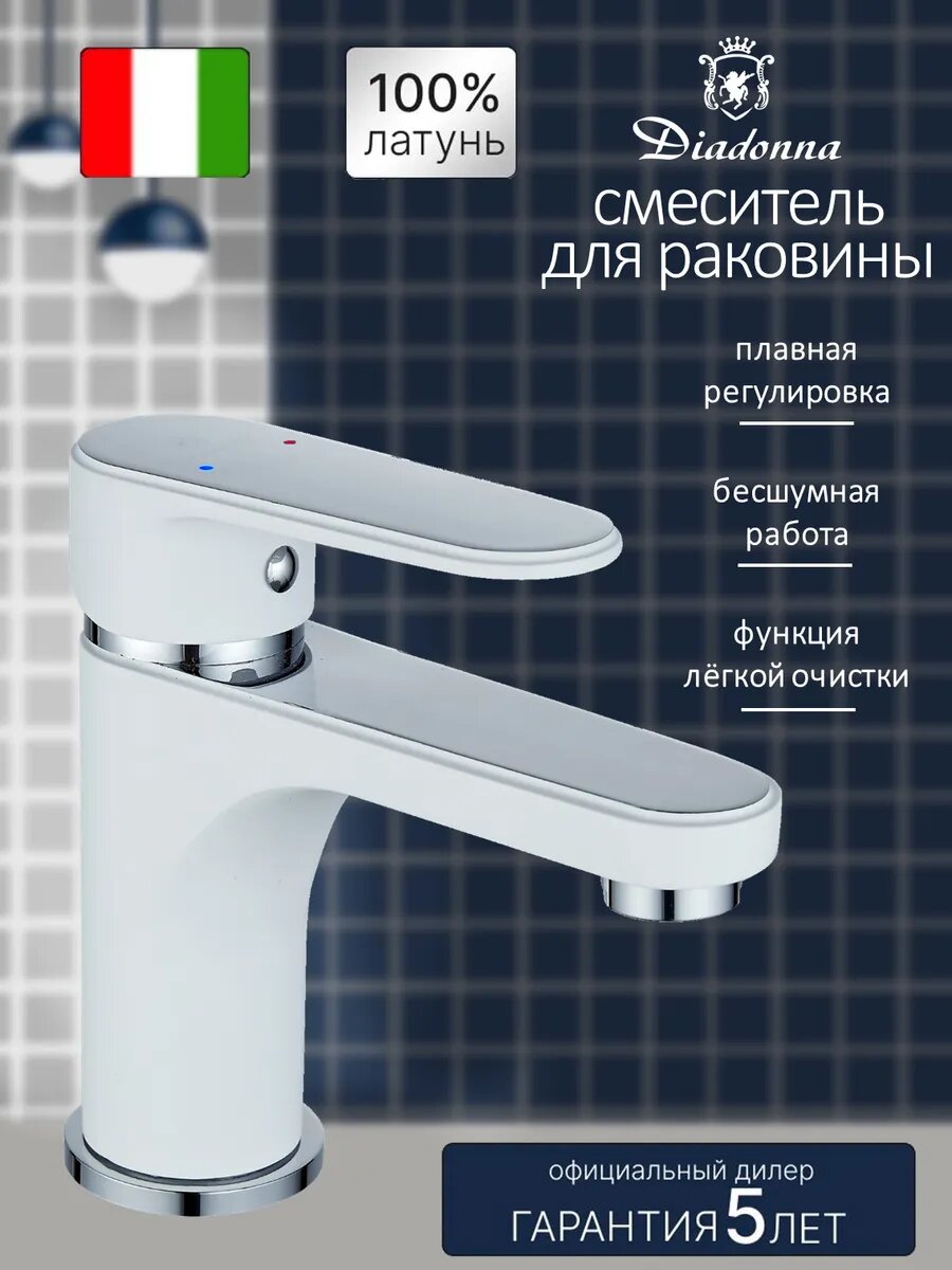 Смеситель для раковины Diadonna, белый, латунь, однорычажный, керамический картридж: сравнение цен, характеристики, фото, актуальное наличие и цены.